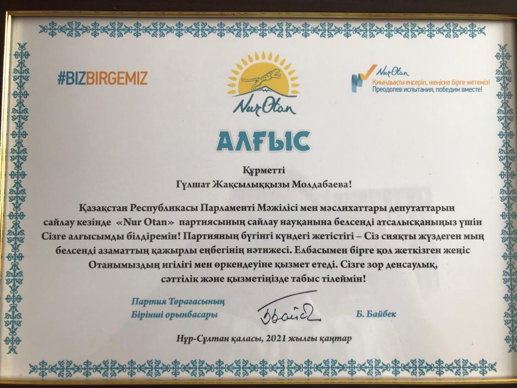 12 ақпан 2021 0 1 2 3 4 5 "Nur Otan" Қазақстан Республикасы Парламенті Мәжілісі мен мәслихаттары депутаттарын сайлау кезінде "Nur Otan"партиясының сайлау науқанына белсенді атсалысқандары үшін мектебіміздің ұстаздары Алғыс хаттармен марапатталды. Осы беттің QR-коды:QR-код этой страницы: