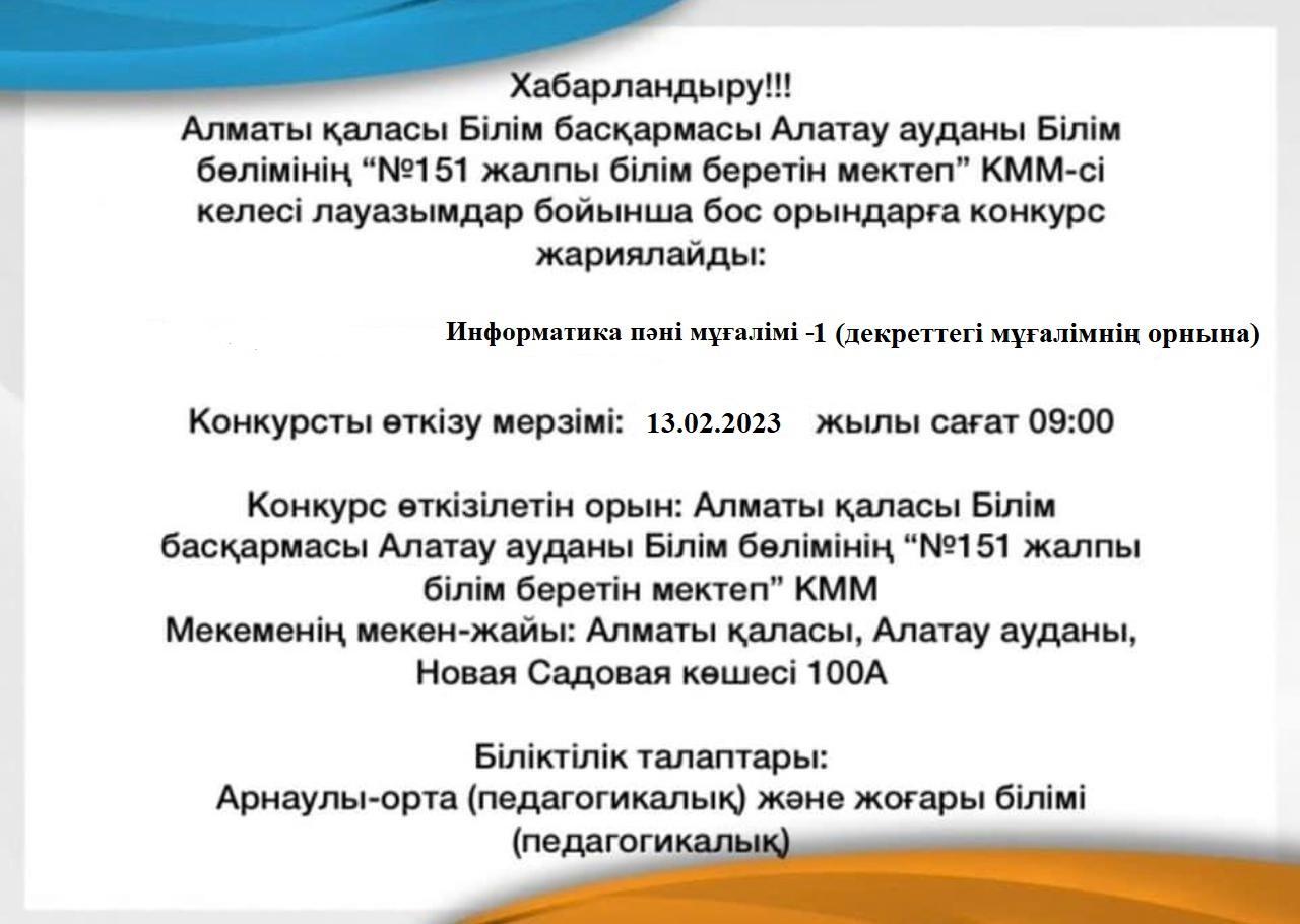 «№151 жалпы білім беретін мектеп»