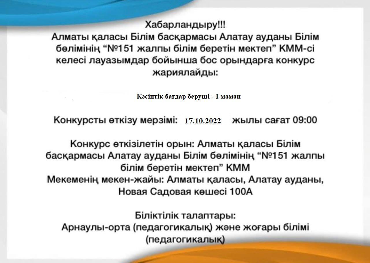 «№151 жалпы білім беретін мектеп»