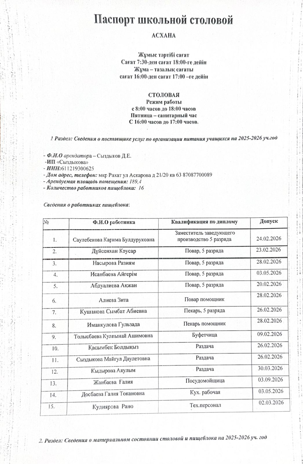 » Мектеп ас блогының паспорты